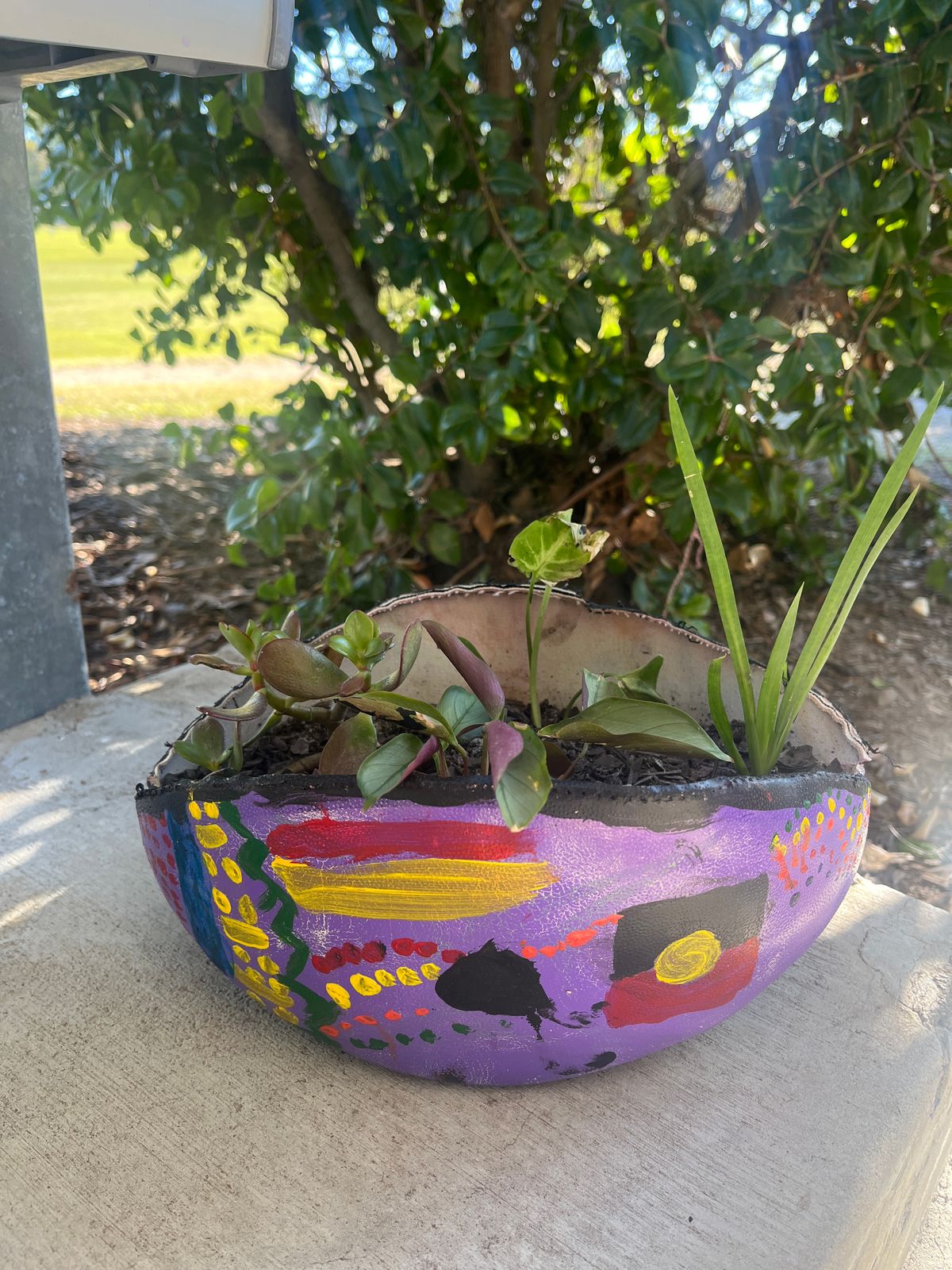 - an old football turned into a plant holder